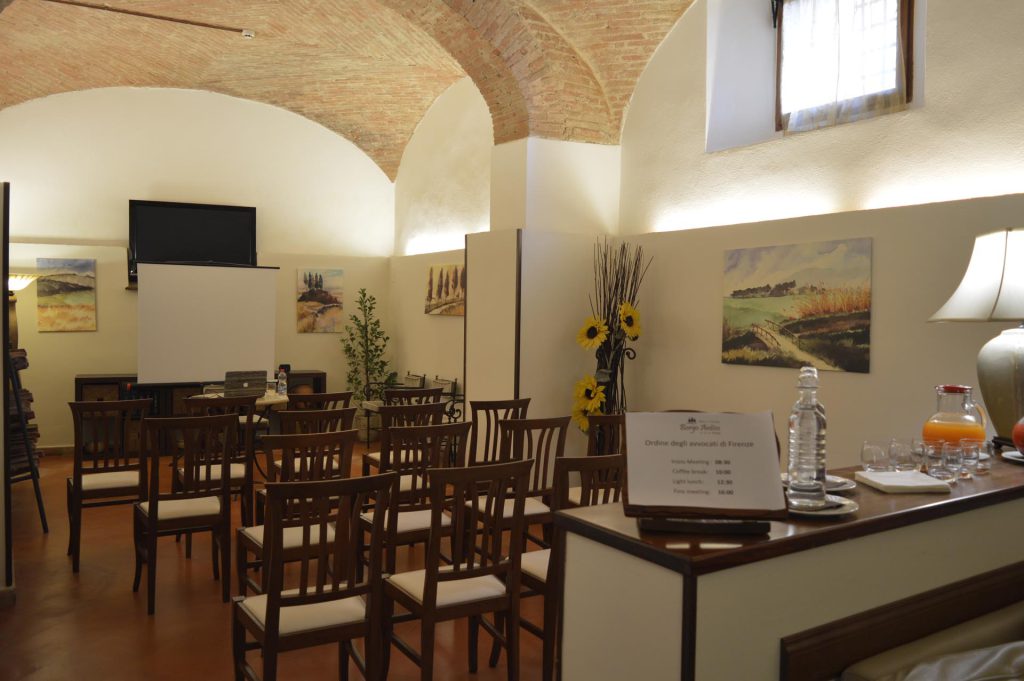 The large living room, once a wine cellar of the castle, with its impressive barrel vault is ideal for ceremonies, meetings, conferences, dinners and lunches.